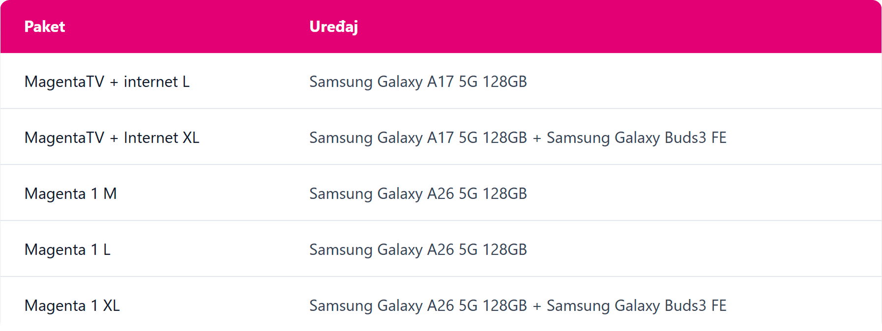 - poklon Samsung Galaxy uređaje uz odabrane pakete